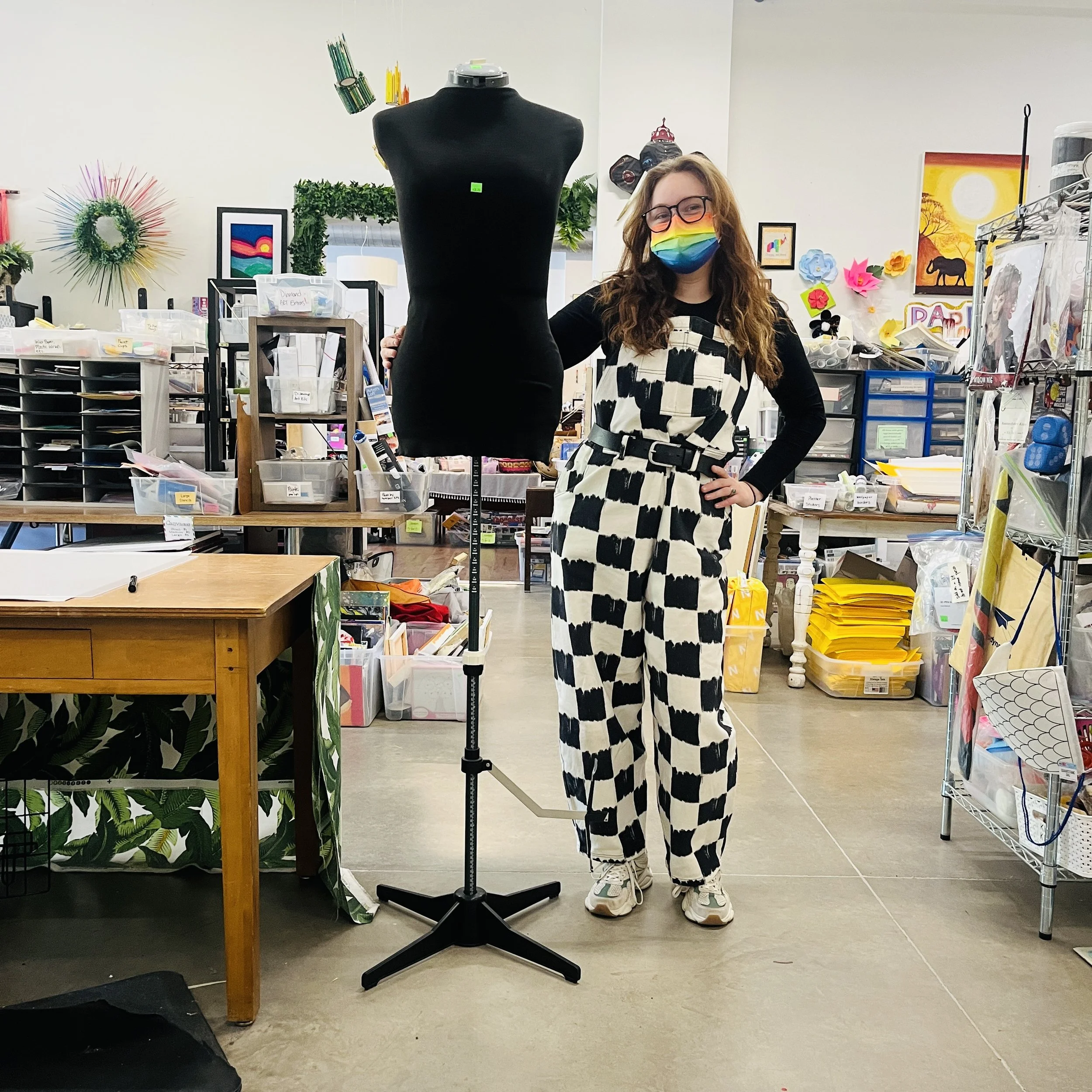 Happy Weekend! We have a great spread of items from a large shelf to a dazzling chandelier, an adjustable dress form to a vintage film canon camera with lenses to fit! Also, we have all the many many Sizzix supplies, a rainbow of rug weaving yarn, and large foam pieces for cosplay and structural artwork. Come by 9-6 to check them out!