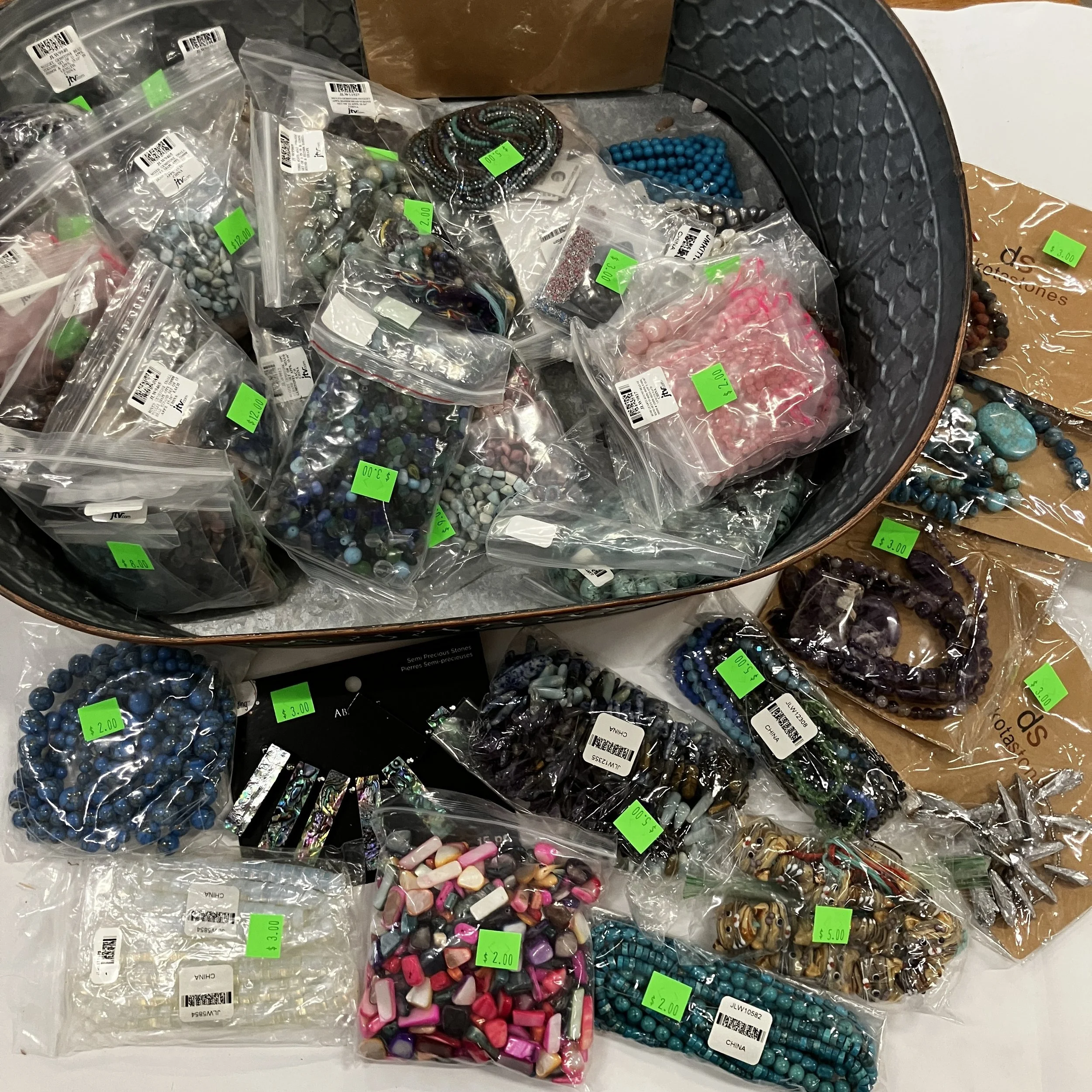 It is a bead bonanza here at the Scrappy Elephant today!!! We received over 300 lbs of absolutely beautiful beads yesterday. If you have been looking for beads, then look no further than the Scrappy Elephant today. And rumor has it, even more are coming in on Thursday! Sorry friends, no holds on beads, there are way too many.