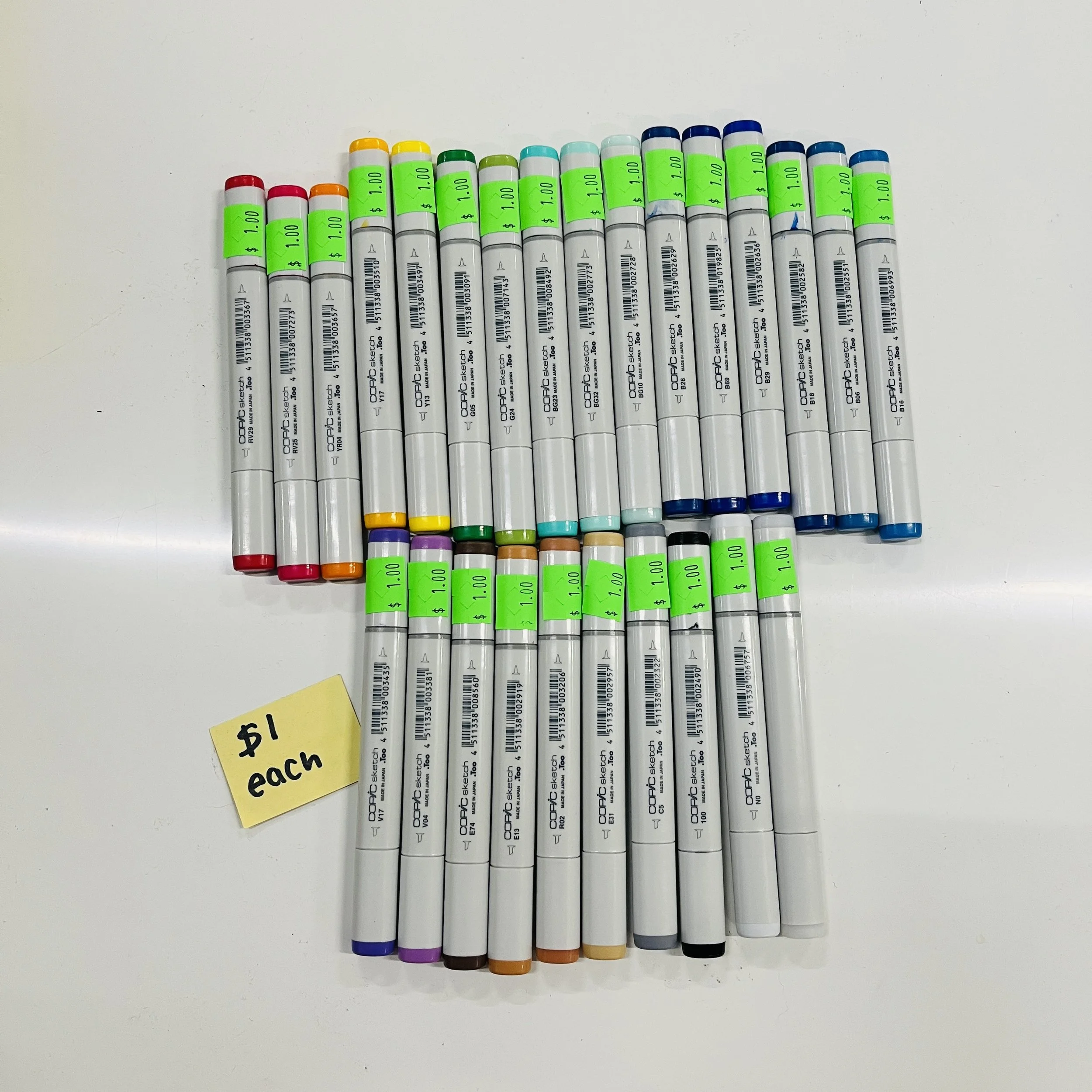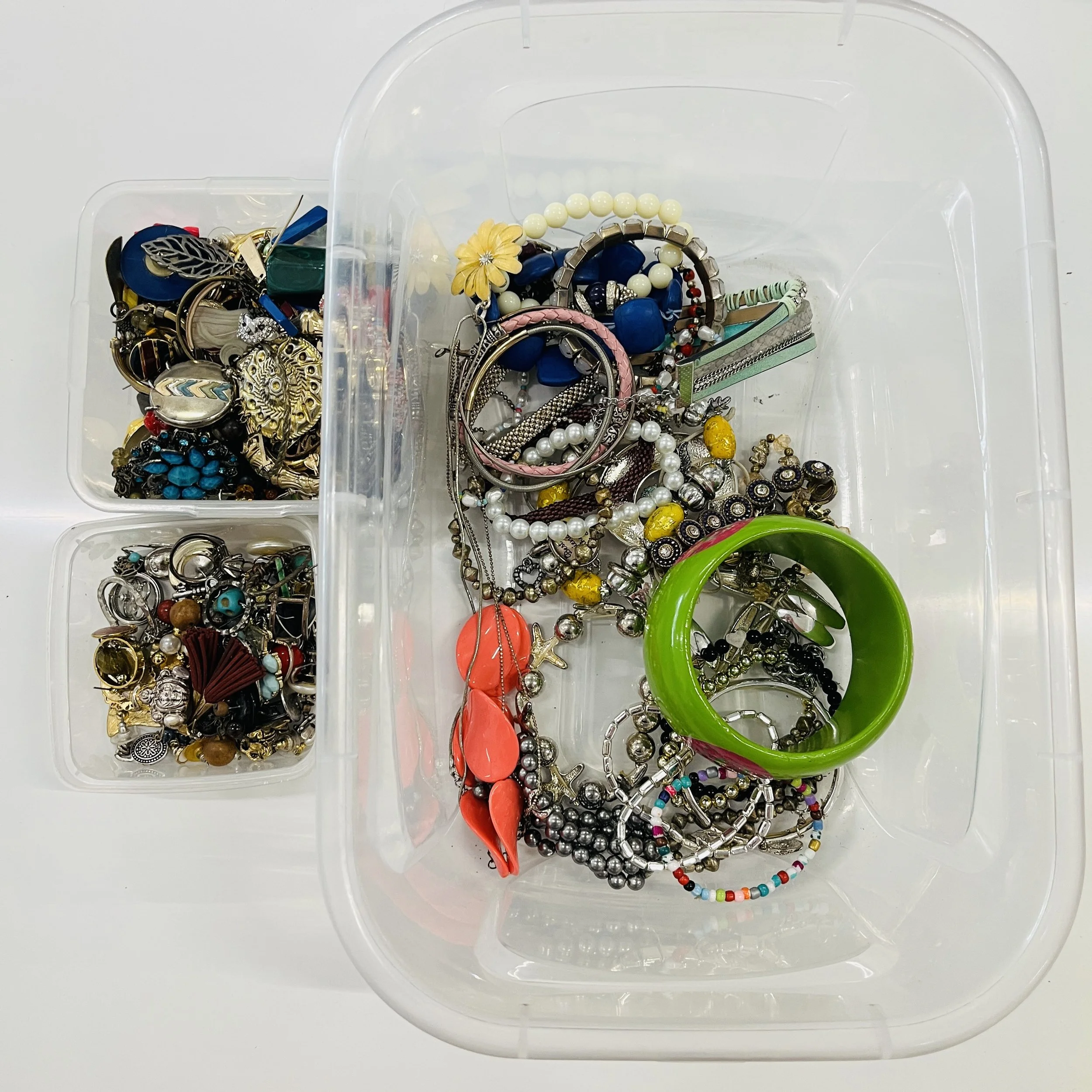 Happy Friday everyone! We have a spectacular selection of all sorts of fun stuff today. From a beautiful assortment of fancy alcohol markers, to what I like to call jewelry soup! We also have this beautiful tiger corduroy if anyone is feeling like they need unleash their inner diva! Lastly, we have a good amount of wool yarn that would be perfect for a project.