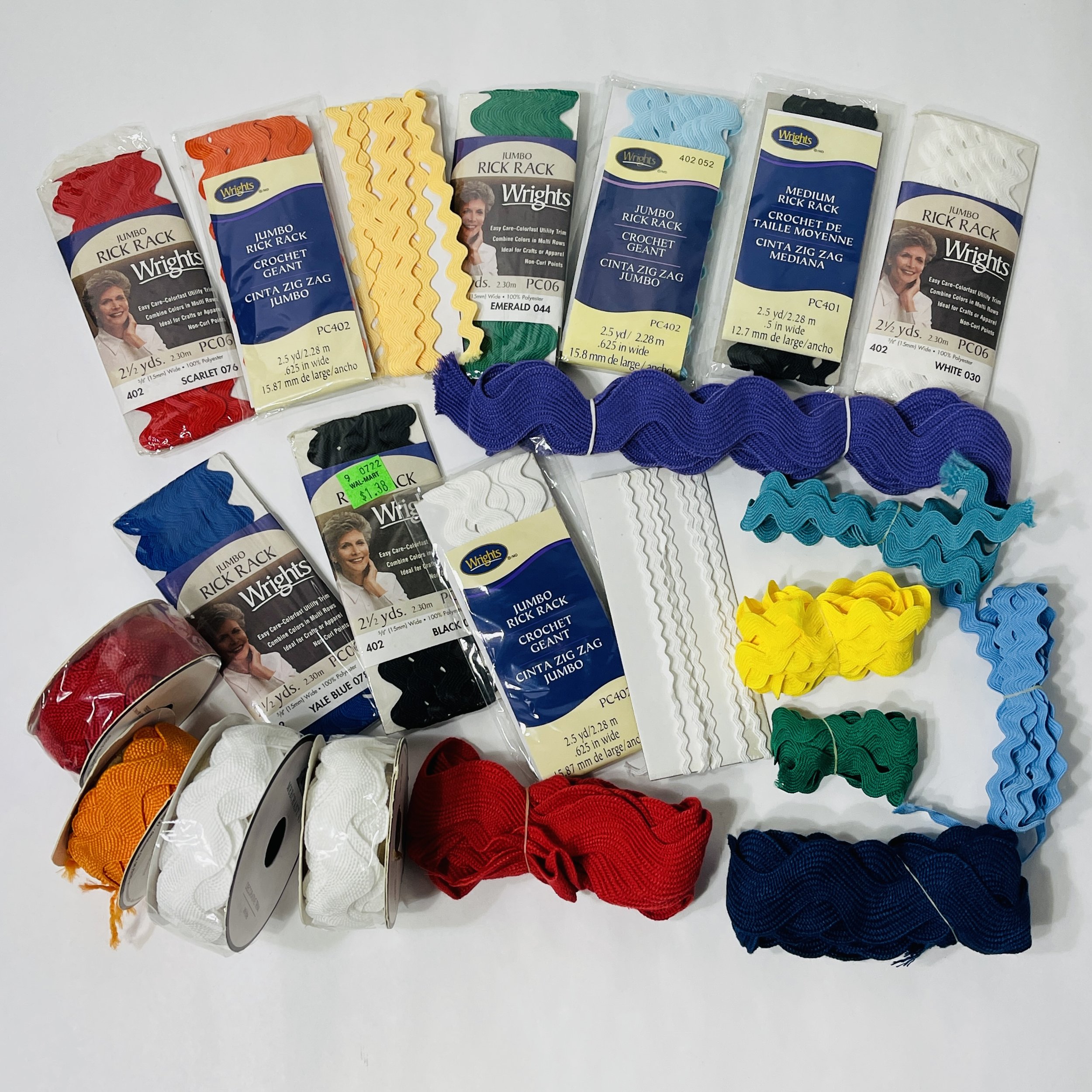 Pattern. Color. Texture. These are the things that make our scrappy hearts happy, and these are the things that today’s fresh finds are just full of. We’ve got stunning fabrics, books to make mixed media masterpieces, and notebooks of all shapes and sizes. We’ve got giant rick-rack, folks. And lace trims, and little fabric bags, and a sewing machine lamp. And if all of that wasn’t enough we have a needlepoint Chinese dragon, ready for finishing. It’s a fabulous day to come see us!