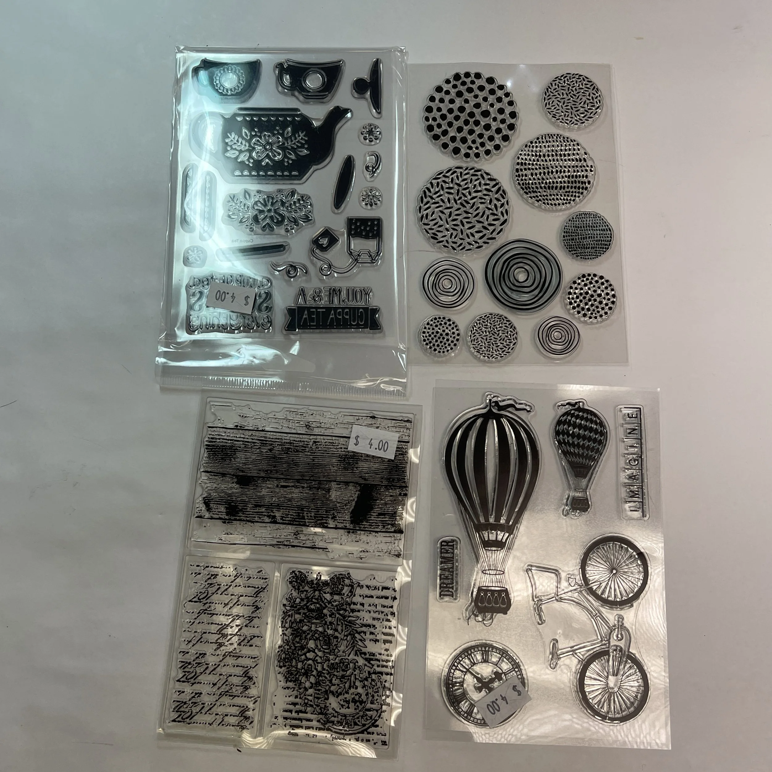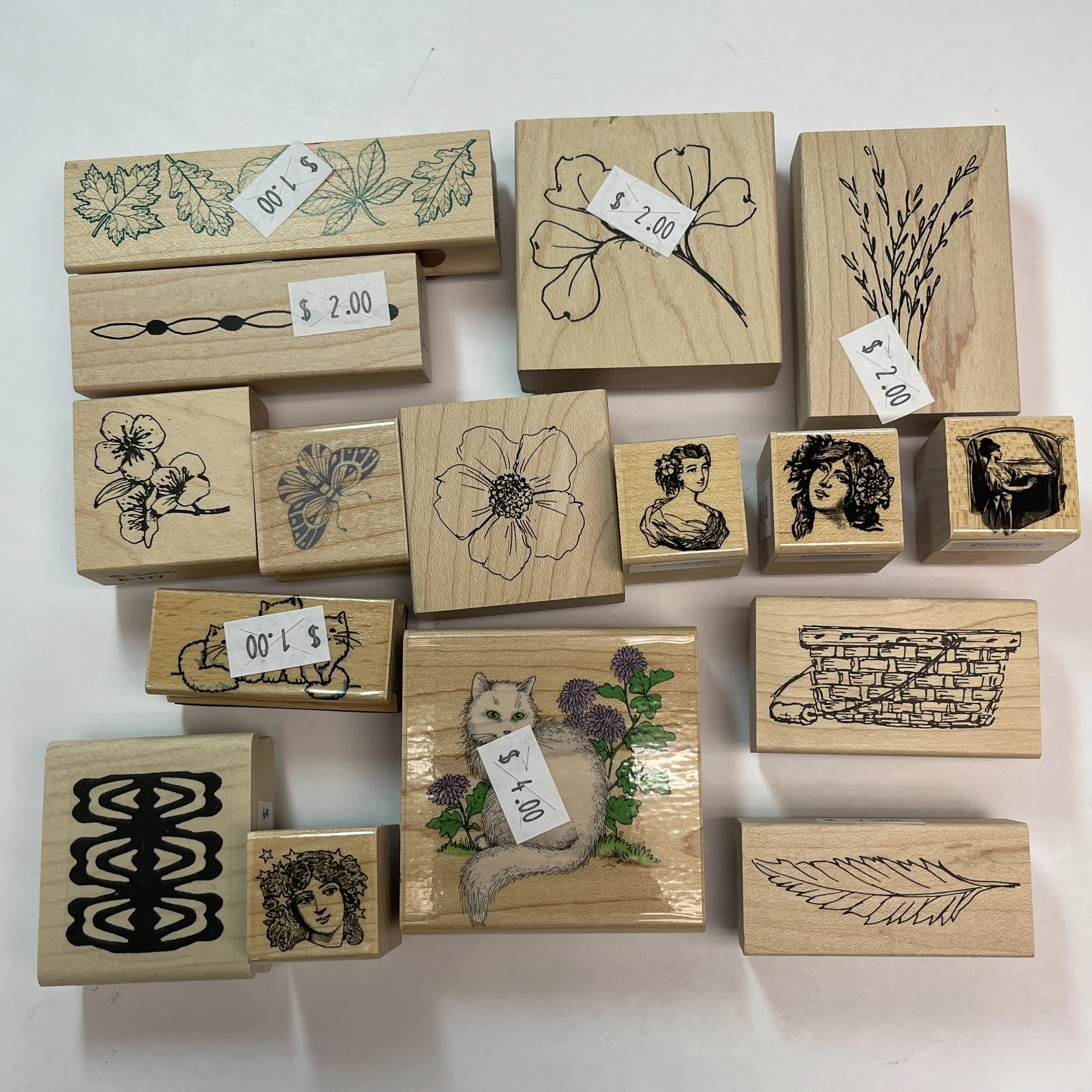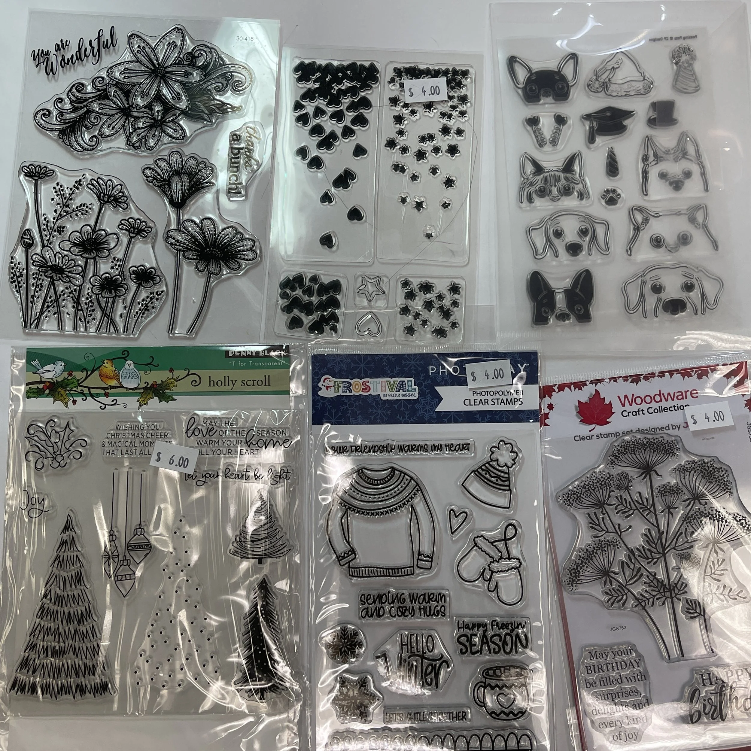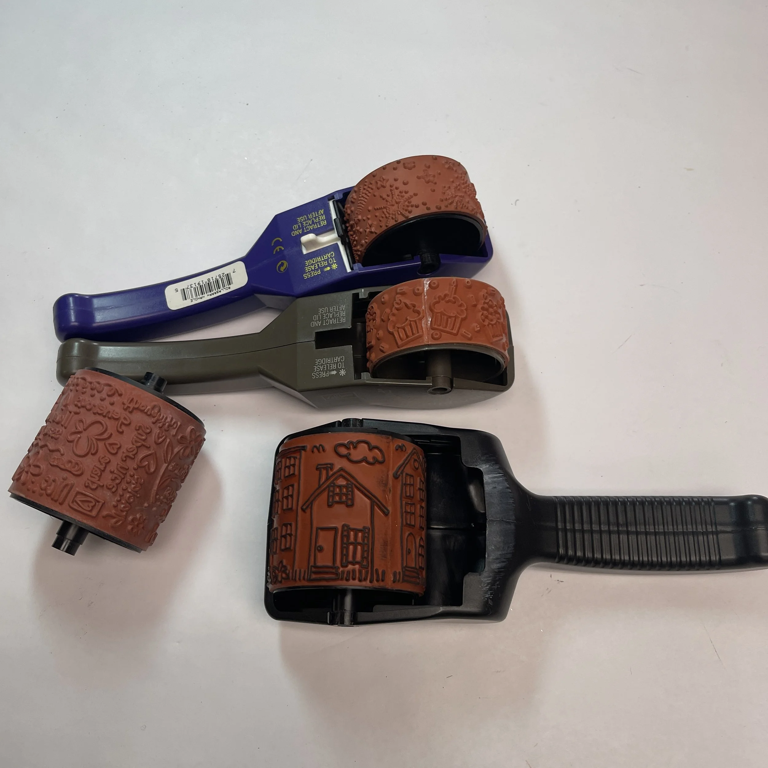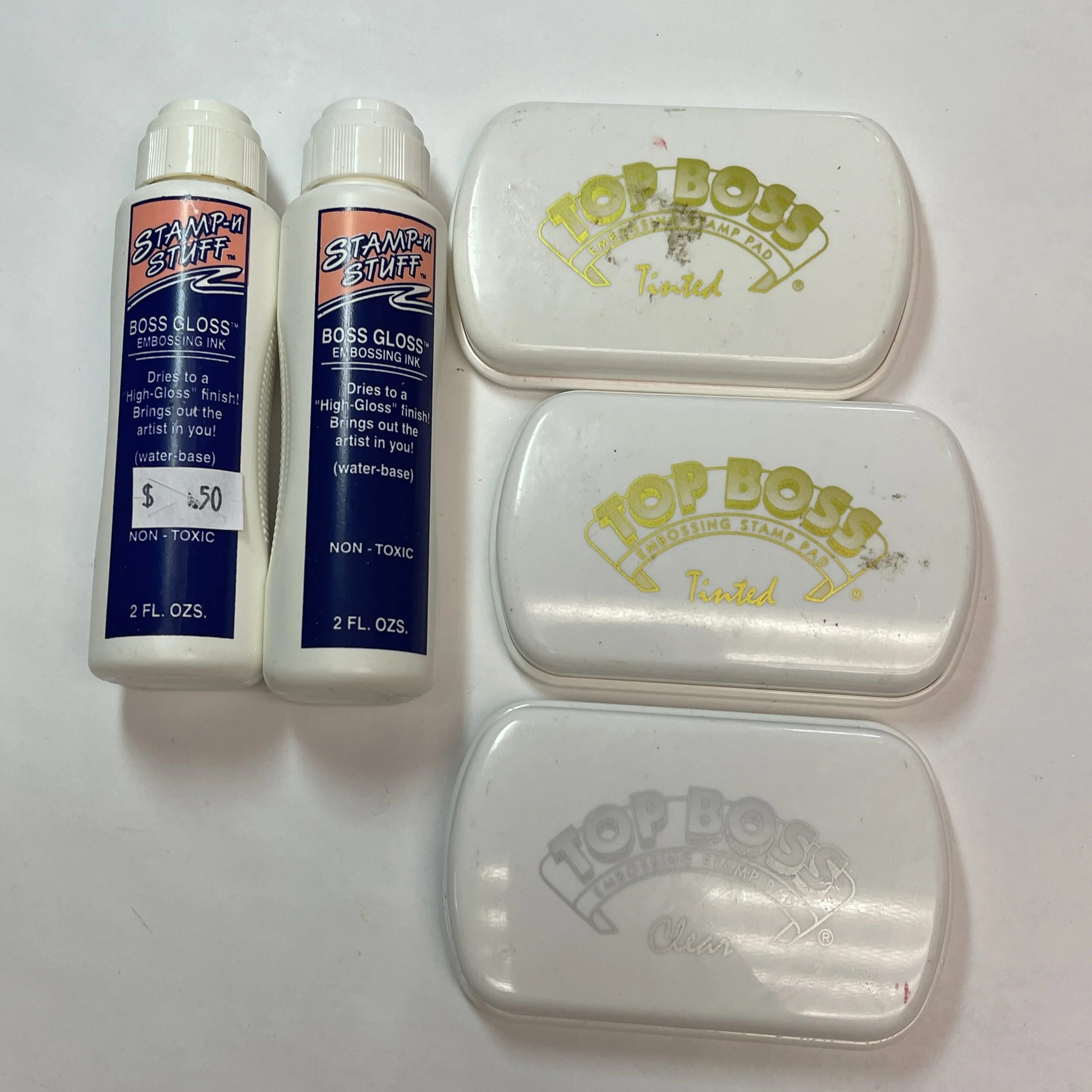 Do you like stamping or embossing? We have oodles and goodles of these items today. We have TONS of clear stamps and even more not pictured. If you are a clear stamp enthusiast you are probably familiar with these acrylic blocks that help with exact stamping. We have a bunch of those along with a load of regular stamps. We always get asked about inkpads and for once we actually have some! There are ink refills and fun ink sprays as well. Have you ever used one of these rolling stamps? You can make a continuous line or boarder with them, how cool?! We have a bunch of embossing powders, mini bottles, and even stamp conditioners. All this and so much more available from 9-5!