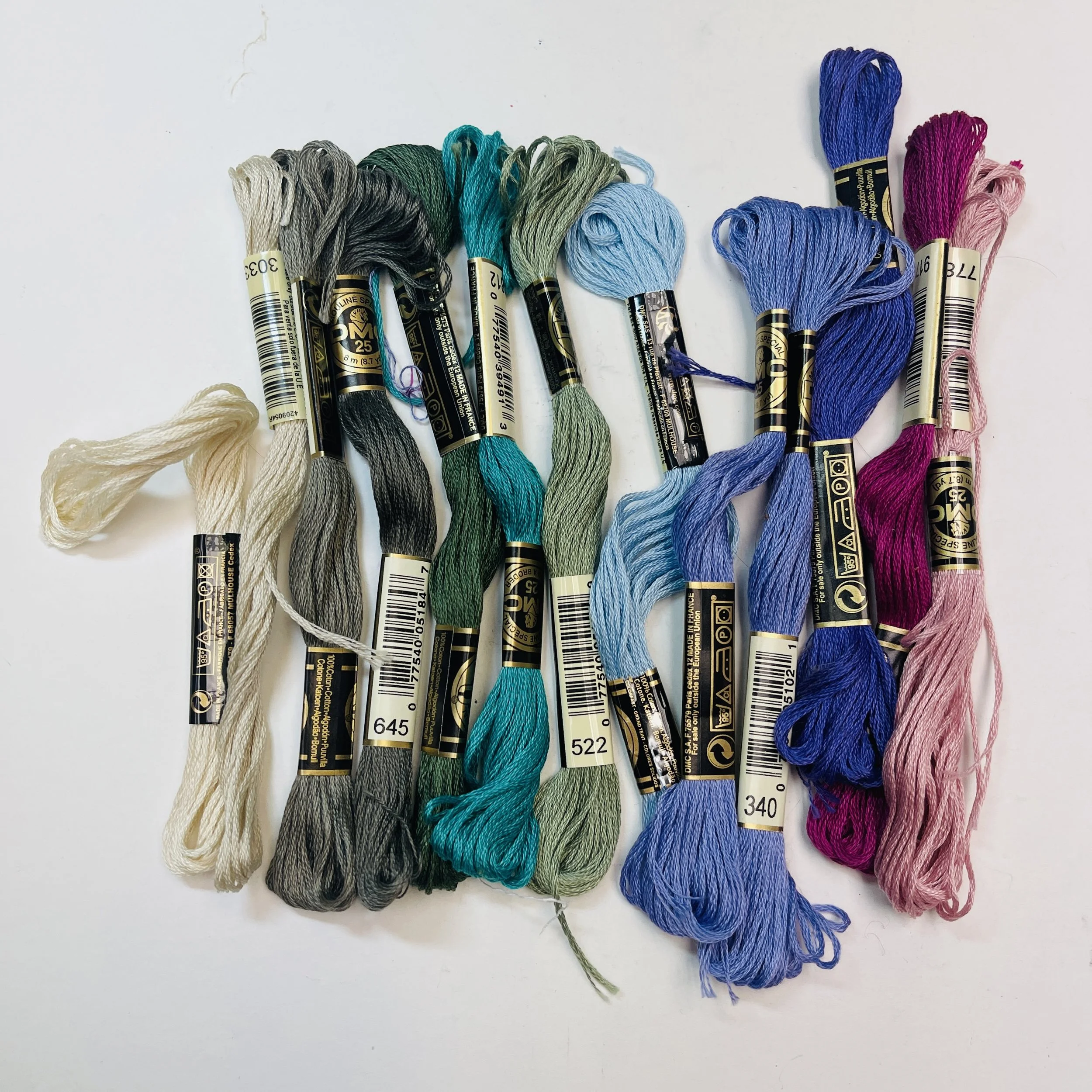 Remember when the fancy fur scarves were the big crafting trend? We occasionally get a big stash of the most fun “fun yarn” and we like to think of other things we can do with it. Fancy fur makes the coolest pom-poms! It also can be the perfect touch to a Halloween costume. If fancy fur isn’t your thing, maybe you’d like to come look at these cross-stitch kits. Silk threads, glass beads, silver charms, and the softest linens - they are really a treat. Tiny purse handles, frames with vintage photos, and a clay earring kit - we’ve got lots of neat stuff today!